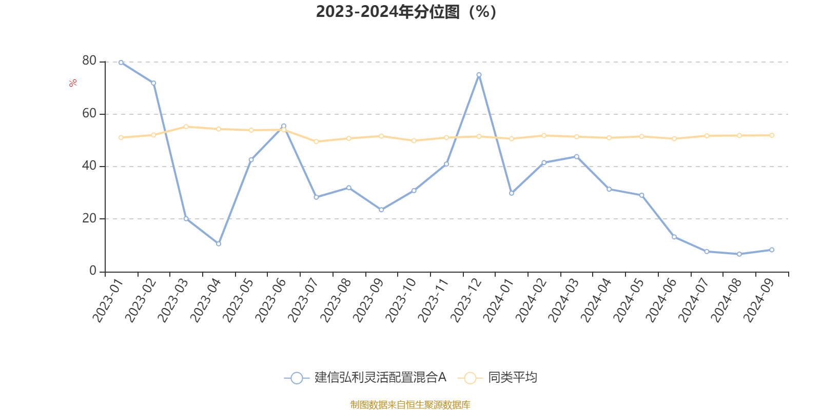 通过所选区间该基金净值增长率分位图,可以观察该基金与同类基金业绩比较情况。图为坐标原点到区间内某时点的净值增长率在同类基金中的分位数。