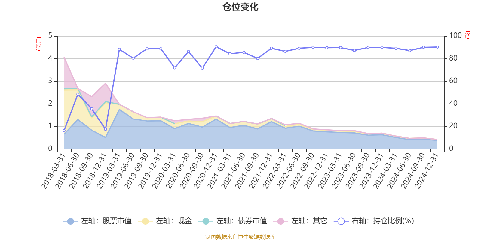 据定期报告数据统计,近三年平均股票仓位为88.96%,同类平均为79.89%。2020年末基金达到90.47%的最高仓位,2018年一季度末最低,为16.24%。